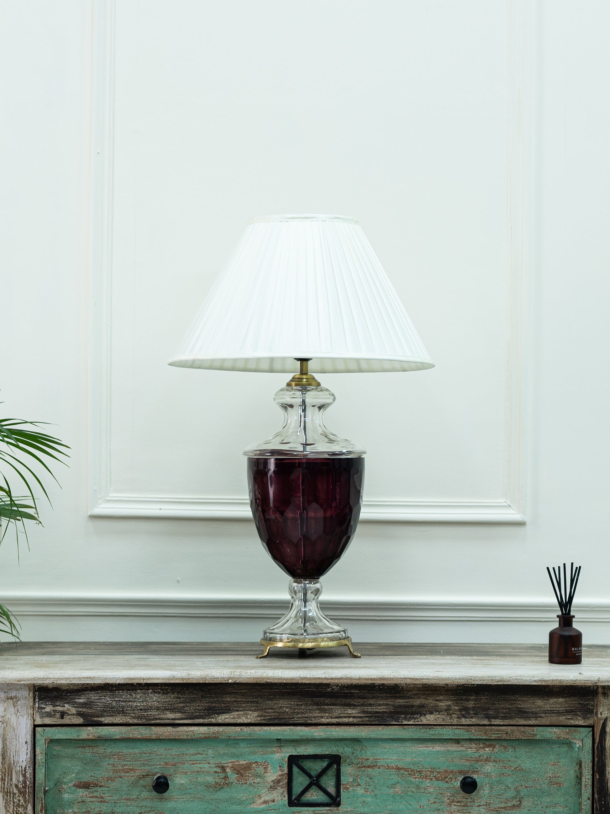 Introducing the exquisite "Mizaaz" lamp - a luxurious addition to any space. With a stunning trophy-shaped stand in rich wine color and a voguish golden silk shade on top, this lamp exudes sophistication and elegance.